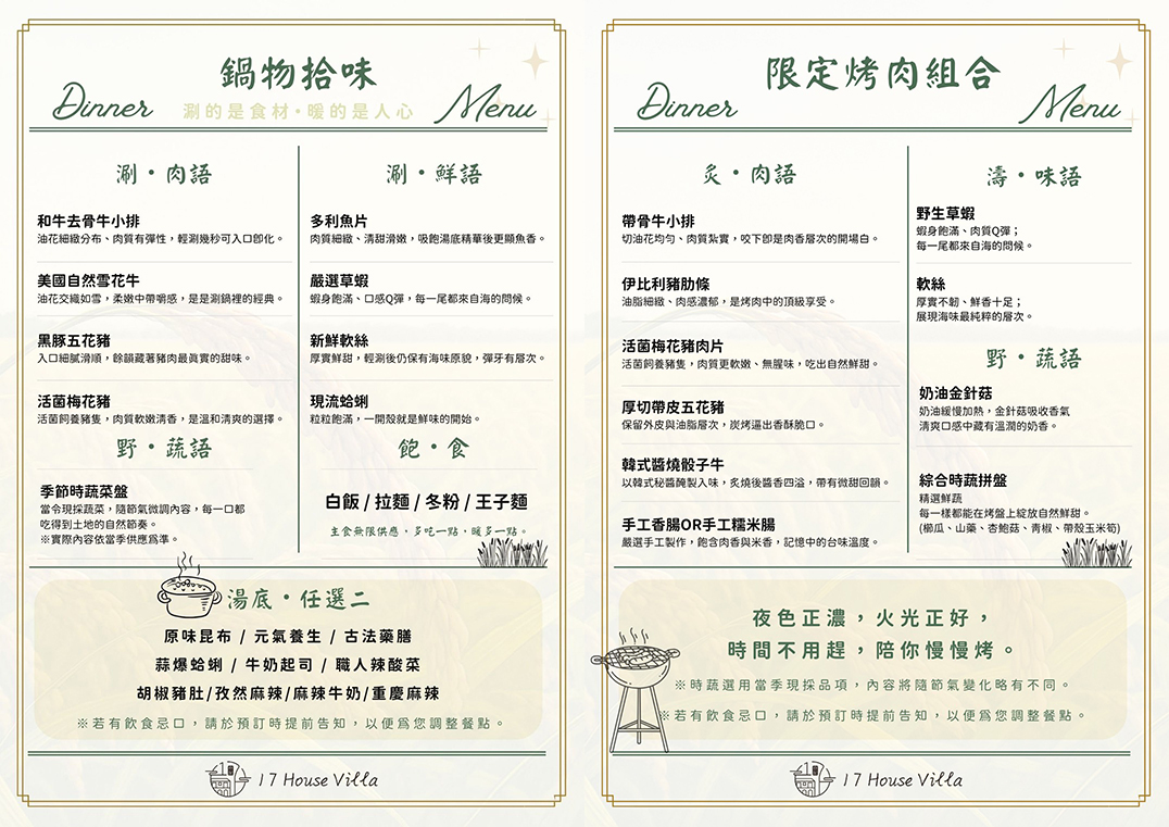 入住當日晚餐則是鍋物饗宴,如果想吃烤肉BBQ的話,也可一人加價200元做升級