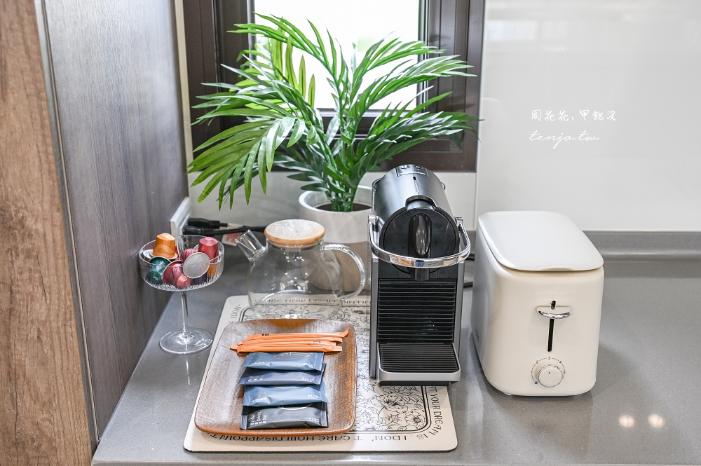 咖啡機、飲水機,甚至是製冰機都有,貼心提供兒童椅、兒童餐具,爸媽帶小朋友來住宿超級安心