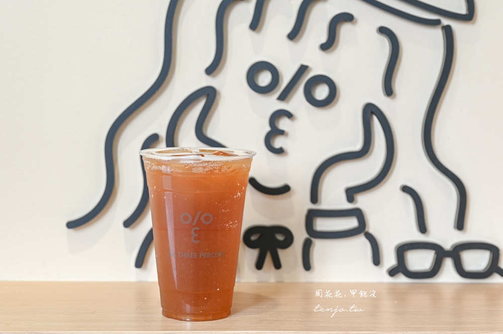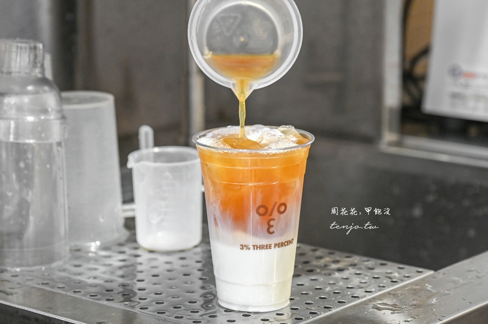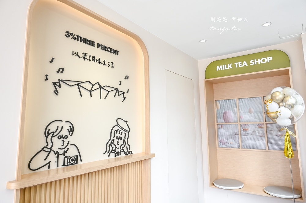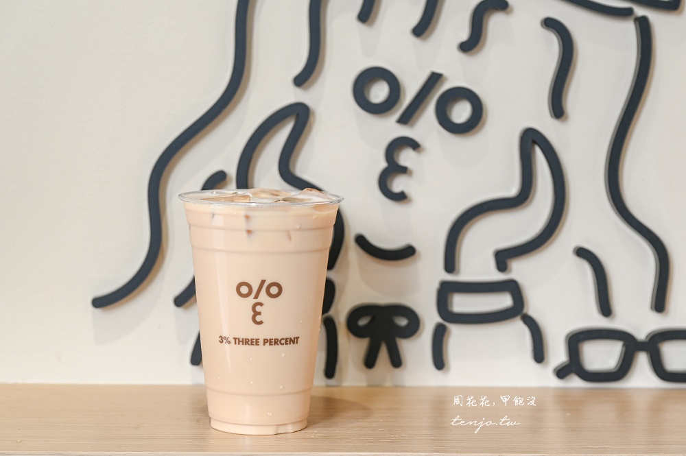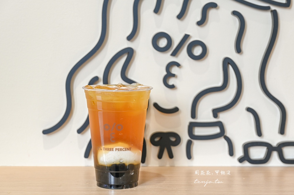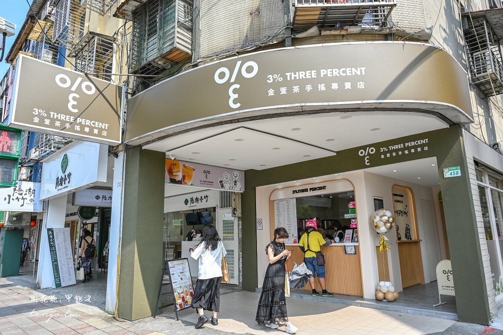 《3% Three Percent 金萱茶手搖專賣店》以得獎的金萱茶王做主打,飲料也確實好喝又有特色