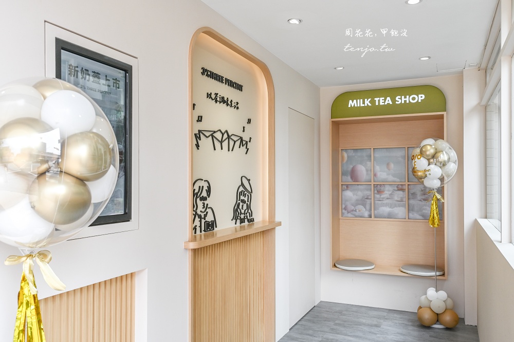 《3% Three Percent 金萱茶手搖專賣店》門市現場有設計網美牆,符合現代人喜歡拍照打卡的習慣