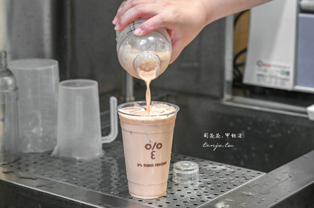 喜歡喝手搖飲料的人,推薦你這家捷運昆陽站出口對面的《3% Three Percent 金萱茶手搖專賣店》,每款飲料品質都很穩定!