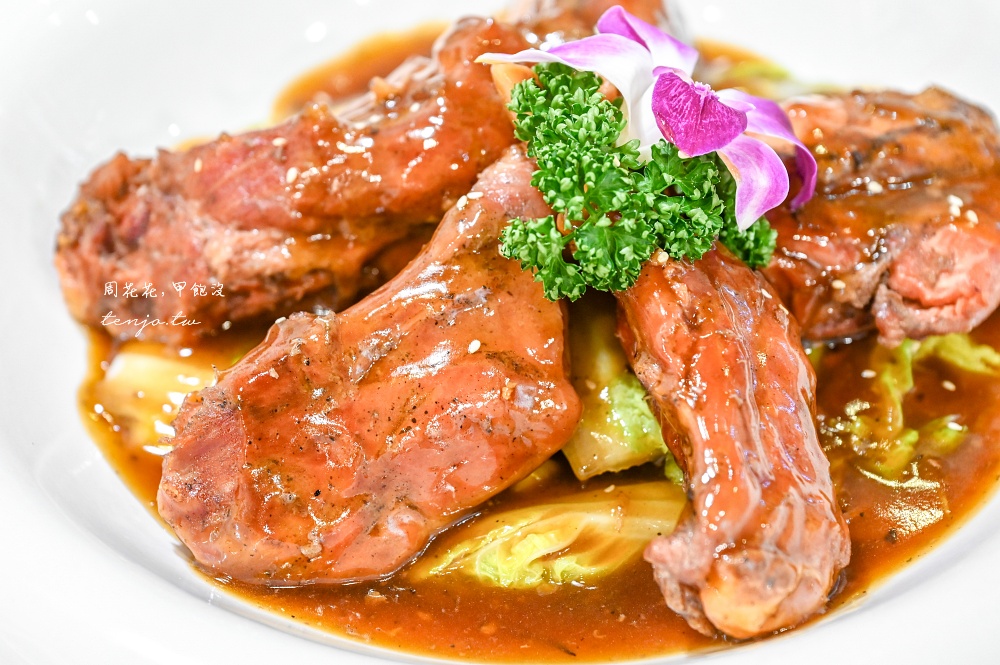 以紅酒蜜方式料理,無論甜感、香氣的表現都更為出色,連底層的娃娃菜都很好吃
