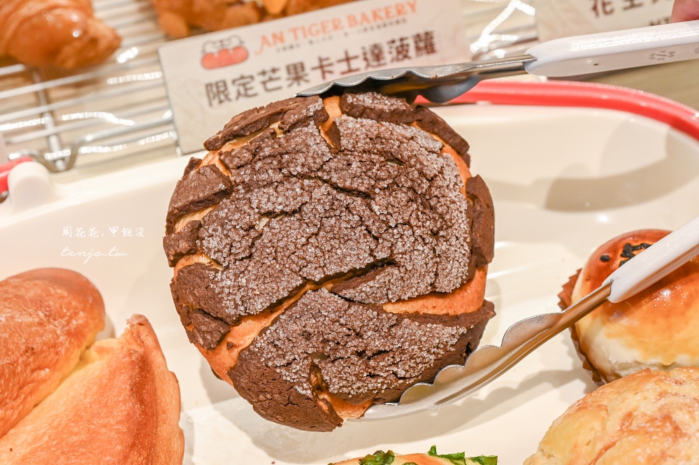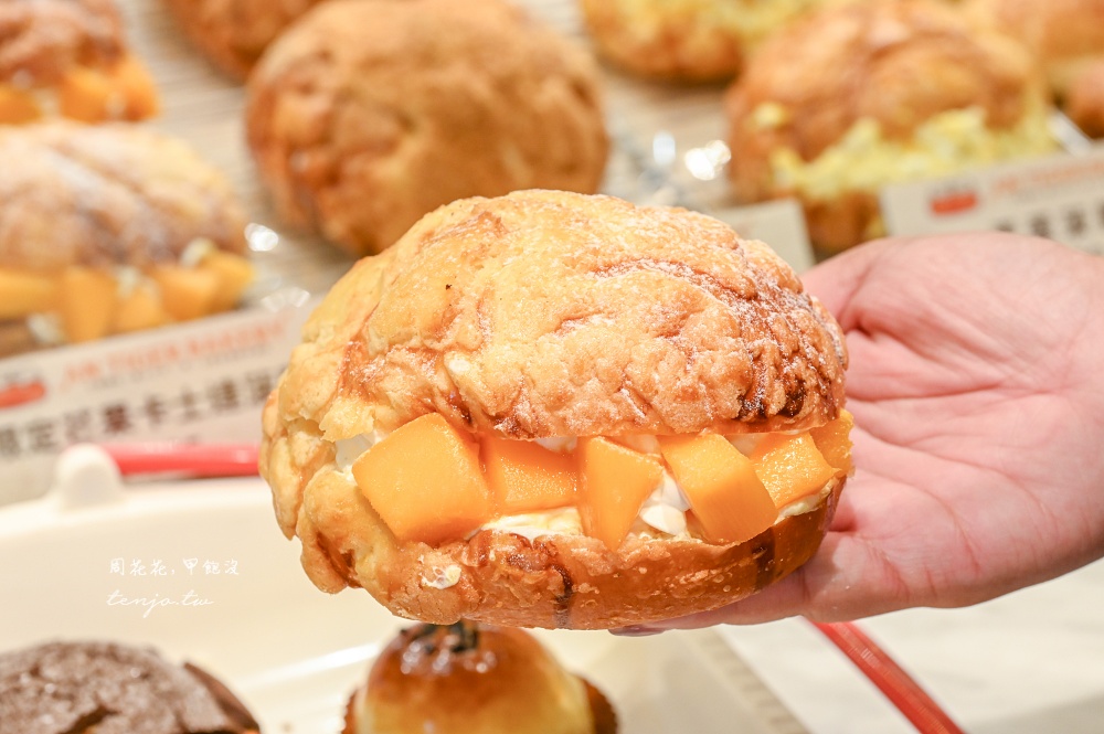 這個是季節限定的芒果卡士達菠蘿麵包,新鮮芒果非常香甜,台灣芒果就是好吃啦