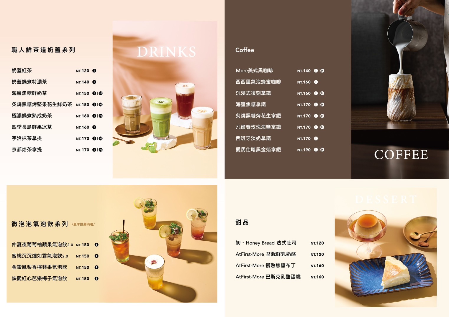 《At.First_More早寓》菜單如下,內用每人低消200元