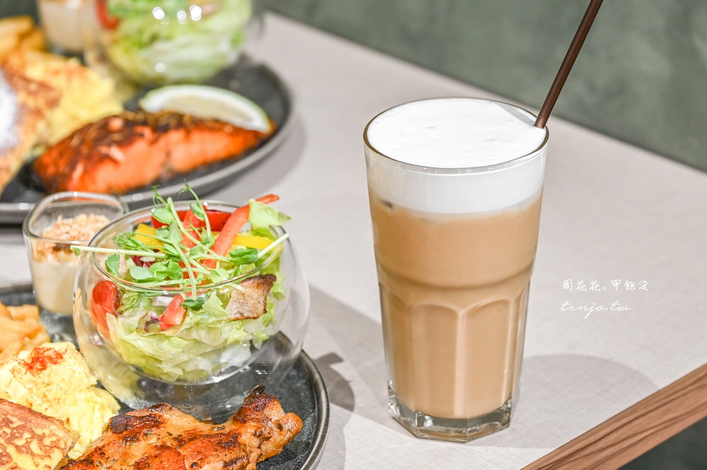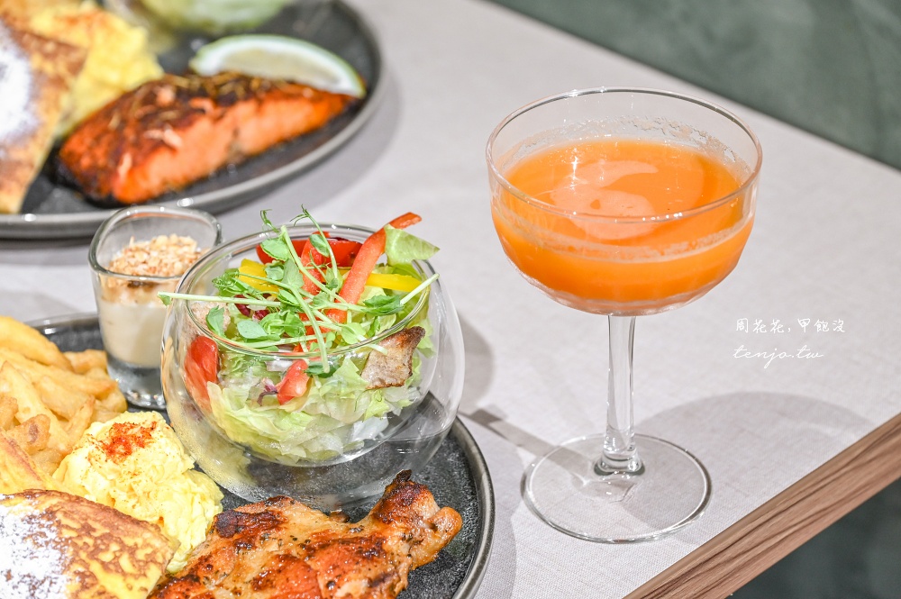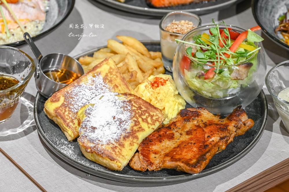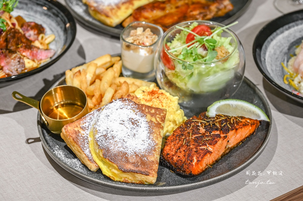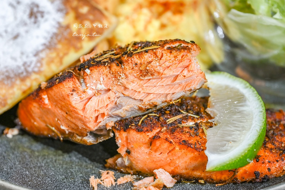 這盤就來試試菜單上同樣很熱銷的Tokyo香檸迷迭香鮭魚排菲力早午餐,鮭魚菲力直接豪賣給一整塊!