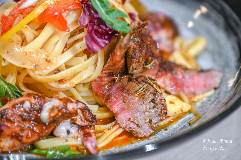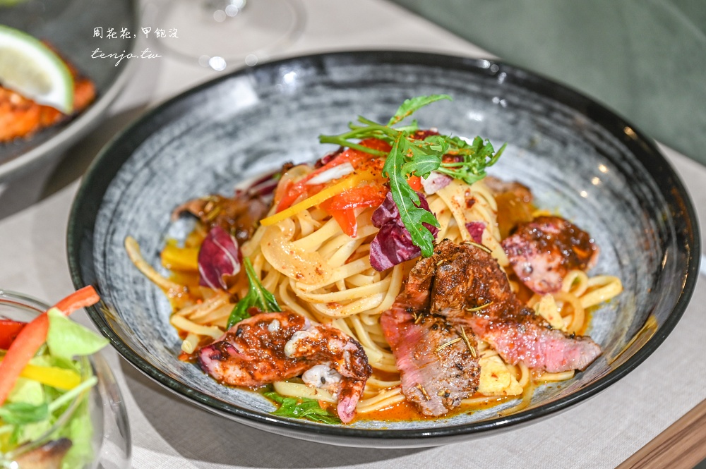 義大利麵一吃就知道等級選得不錯,帶有討喜的麵心口感,餐點份量上同樣相當夠誠意