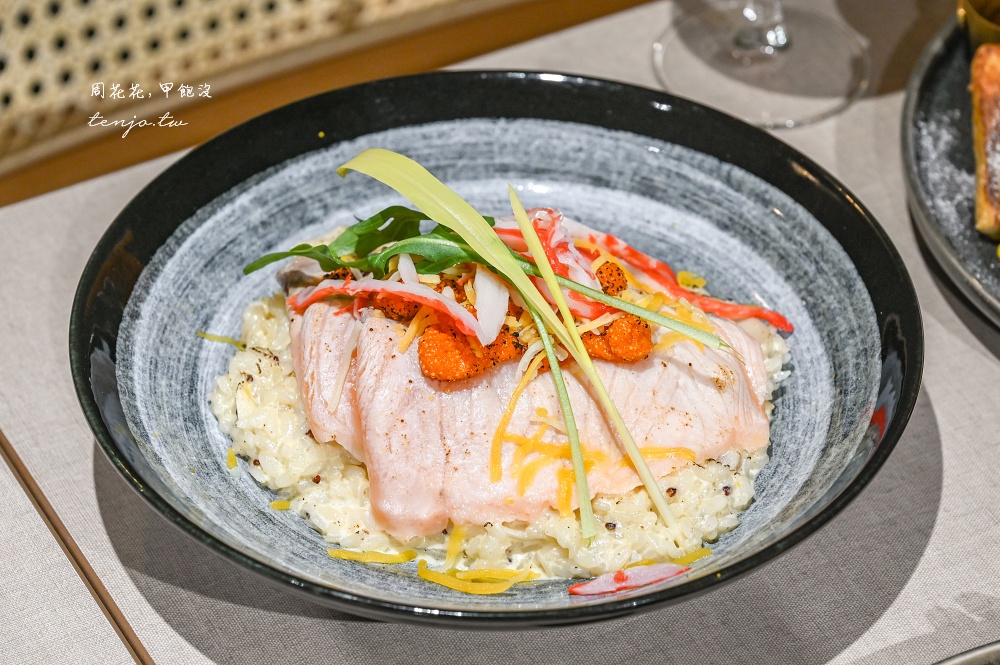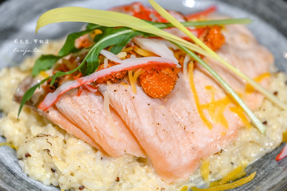 炙燒煙燻鮭魚、海膽份量給得十分豪邁,每一口燉飯都能有滿滿海鮮可做搭配