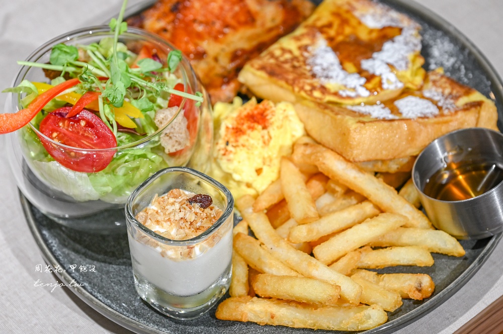 餐點皆附美式嫩蛋、黃金脆薯、烤法式吐司、希臘優格、現打無添加果汁,讓你開啟活力十足的一天