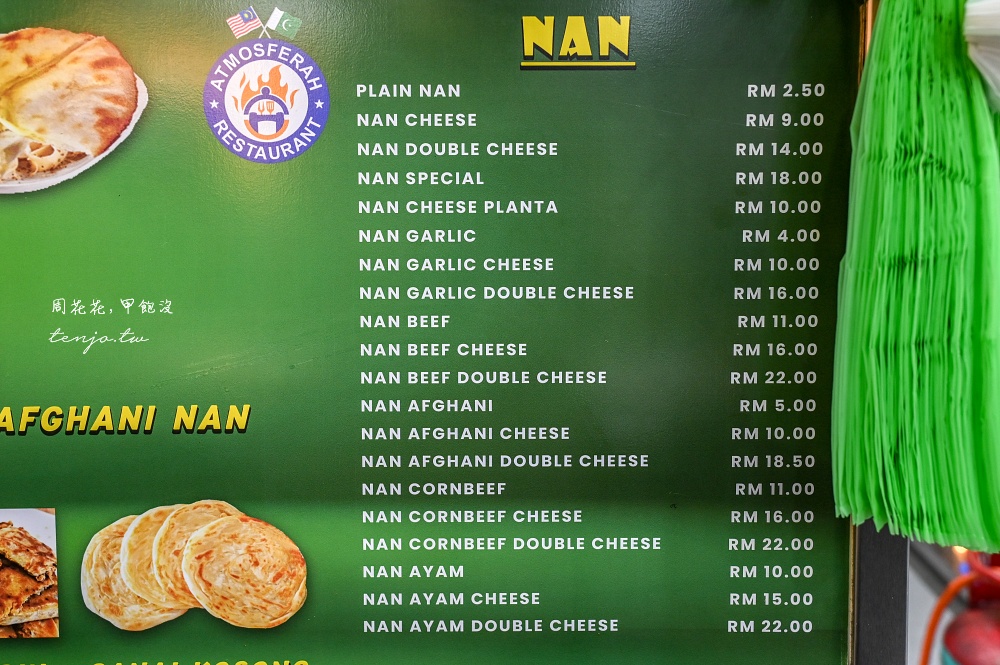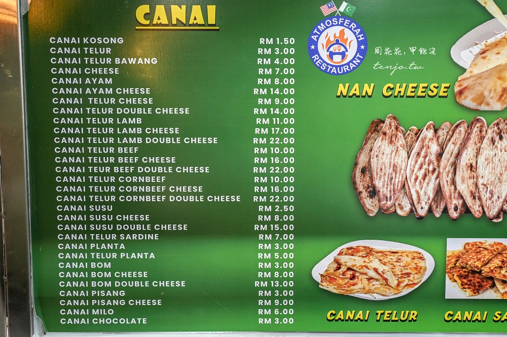 《Atmosferah Restaurant 3》菜單菜色選擇非常多元,從古晉美食到咖哩、印度煎餅應有盡有