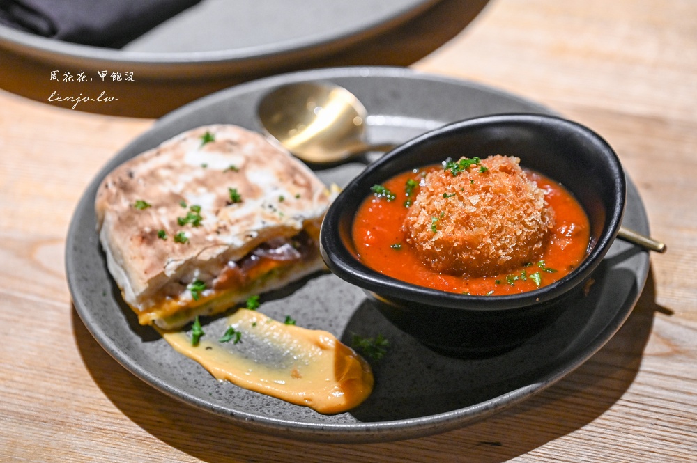 在地人推薦的前菜組合,有番茄炸飯糰、帕里尼