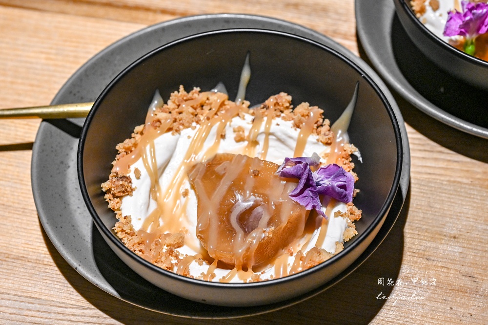 甜點點了份水煮梨子搭配焦糖醬、薑味脆餅,組合起來的風味香甜好吃