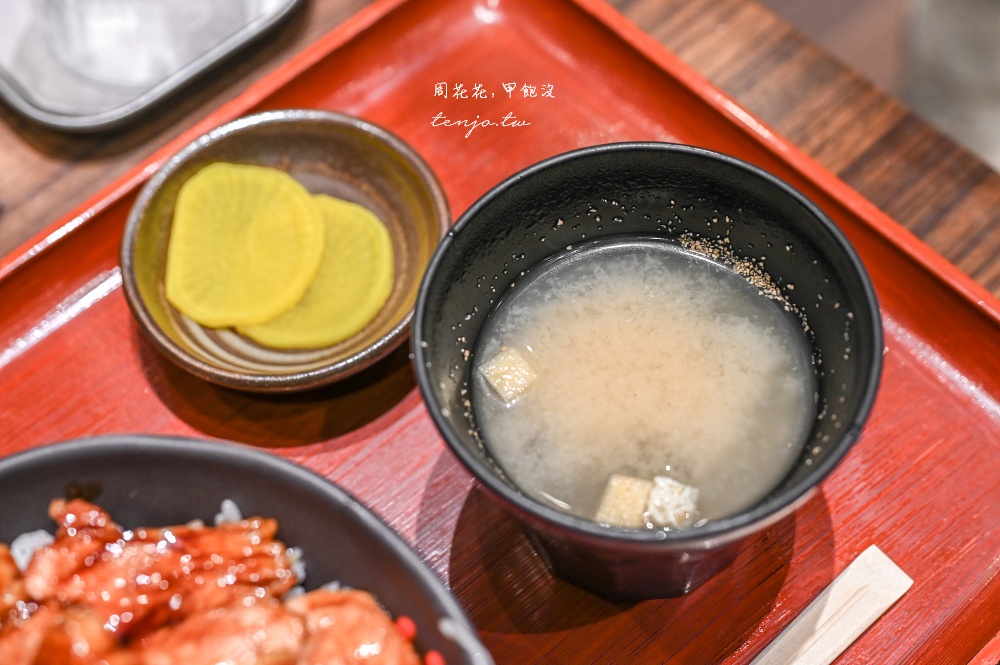 丼飯皆附漬物、味噌湯,可以和豚丼搭配著吃