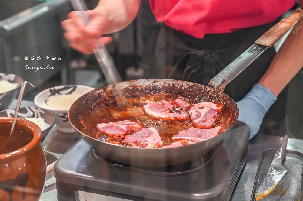 《豚丼名人 豚丼專門店》招牌豬肉丼飯,全部都是現點現做,可以透過玻璃櫥窗看到製作過程