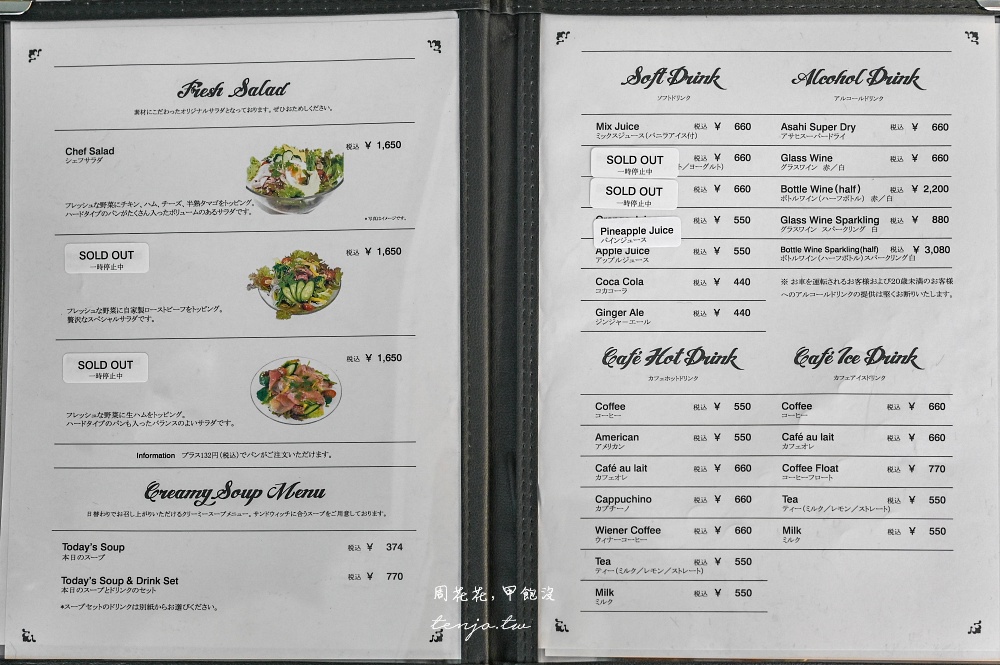 《Cafe FREUNDLIEB》菜單如下,最新版可點此至官網瀏覽