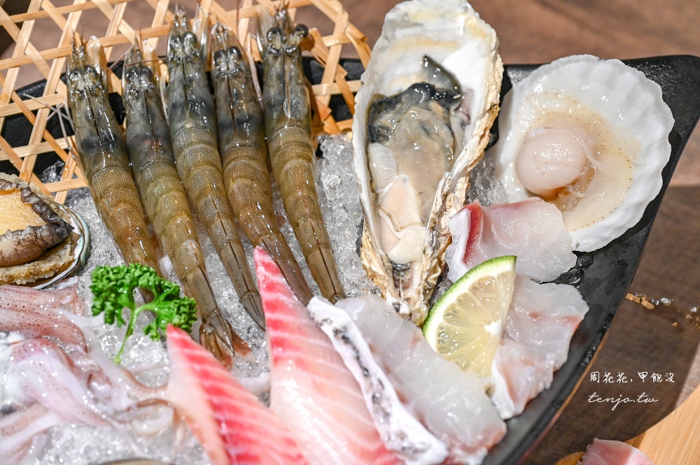 光是海鮮盤就有蛤蜊、生蠔、白蝦、潮鯛魚片、龍膽魚片、扇貝、九孔鮑、小卷,多種滿滿好料,size一看就有特別選過,沒有在馬虎隨便的啦