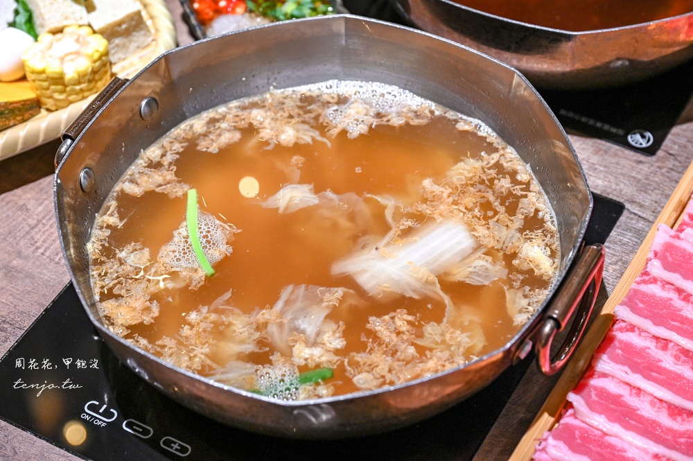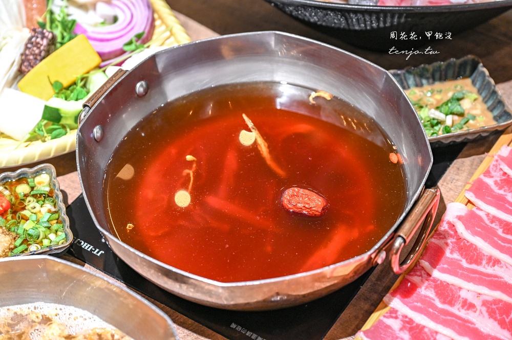 滋補養生藥膳鍋以多種中藥材小火慢燉,湯頭看似清澈其實十分濃郁,涮任何食材都超夠味