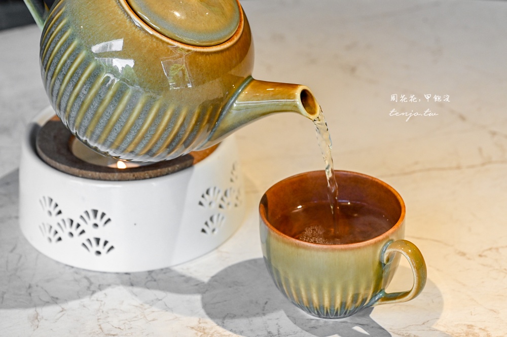 熱茶共有紅玉、鐵觀音、金萱三種選擇,一壺為250元,可供6人享用