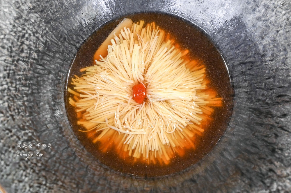 縱橫各20刀的豆腐,放進湯中呈現美麗的菊花形狀,是一道兼顧視覺與美味的功夫湯品