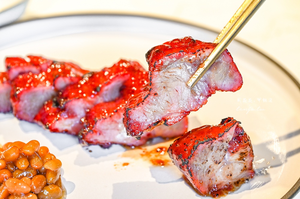 食材選用活菌豬梅花肉條,除了以叉燒醬醃漬入味外,美味靈魂在於淋上柴燒麥芽糖,交織出甜甜鹹鹹好滋味