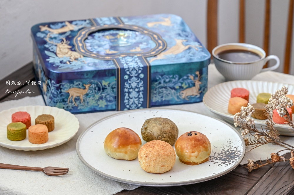 「鹿躍星空禮盒」為中式漢餅系列,內容物共有四種:松子茶酥/幸福Q餅/蛋黃酥/酒藏皇妃酥