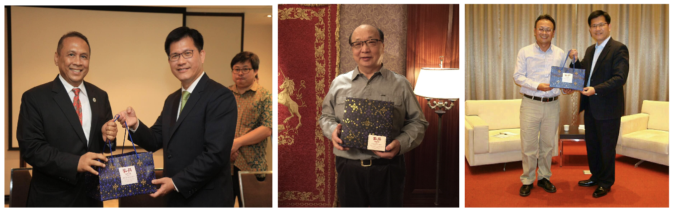 從歷任台中市長合照中可見,丰丹禮盒長年為台中市政府指定贈送外賓的首選伴手禮