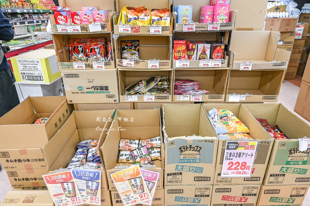 要買水、茶、牛奶、咖啡、零食、泡麵等,旅行時的每日生活必需品,都會第一天就先到《業務超市(業務スーパー)》採買齊,這樣接下來幾天就不用煩惱了