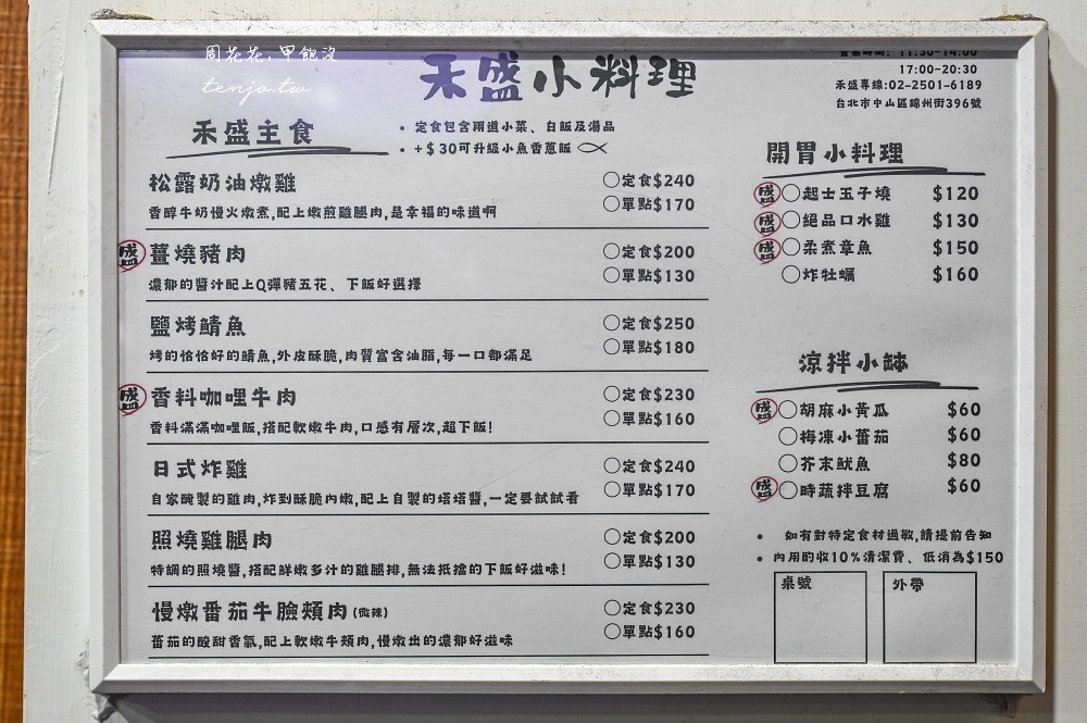 如果擔心會客滿的話,《禾盛小料理》有提供訂位服務,建議可以先打個電話預約好再來