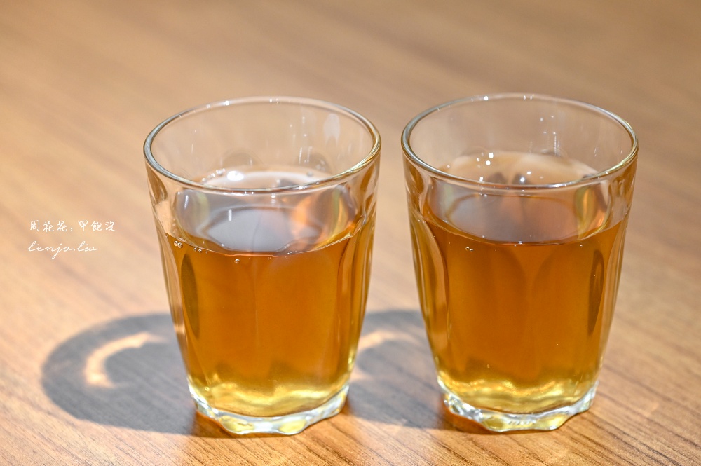 桌上小杯麥茶喝完也要自己詢問是否可續杯,後來才發現加一成在菜單上寫的是「清潔費」