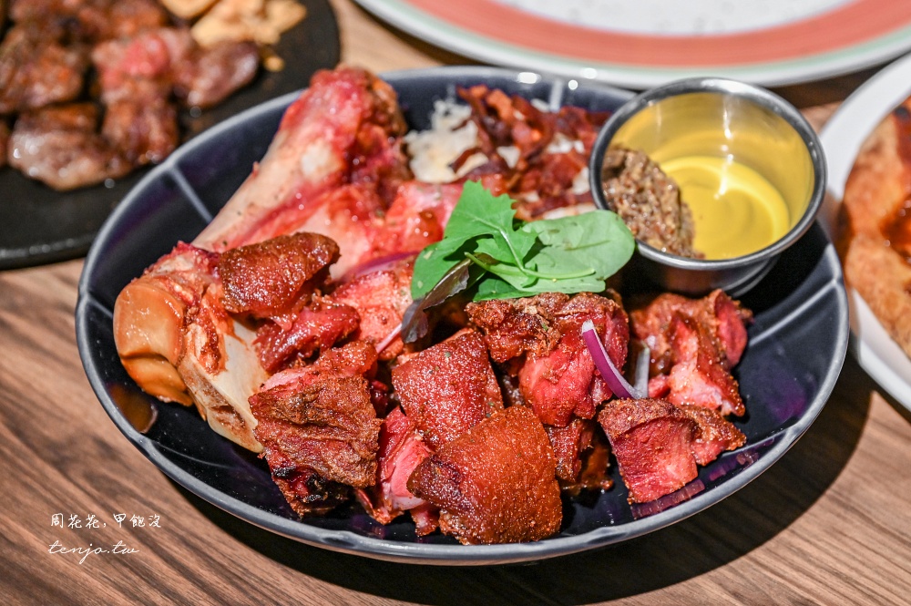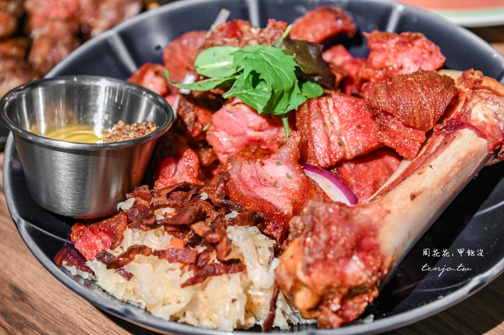 德國豬腳外皮烤至焦香酥脆,以先炸後烤的方式料理,既能鎖住肉汁又能帶出表面脆度