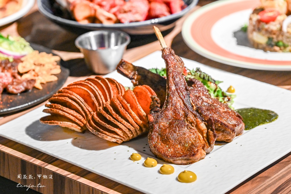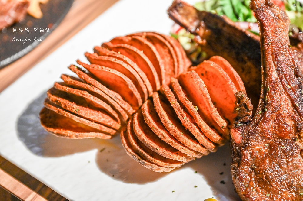 兩大隻小羔羊肩排搭配手風琴馬鈴薯,胃小一點的兩個人,可能光是玩這盤就飽了