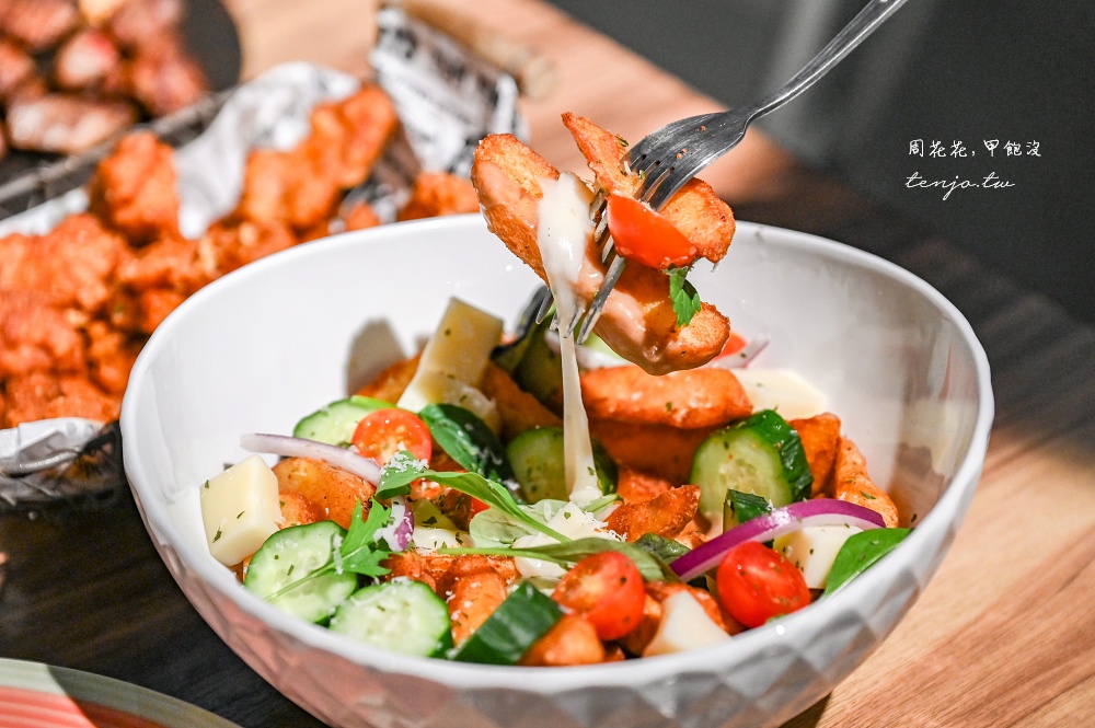 我很喜歡加入小黃瓜、番茄、生菜這個巧思,能平衡炸物的油膩感,變得更加耐吃