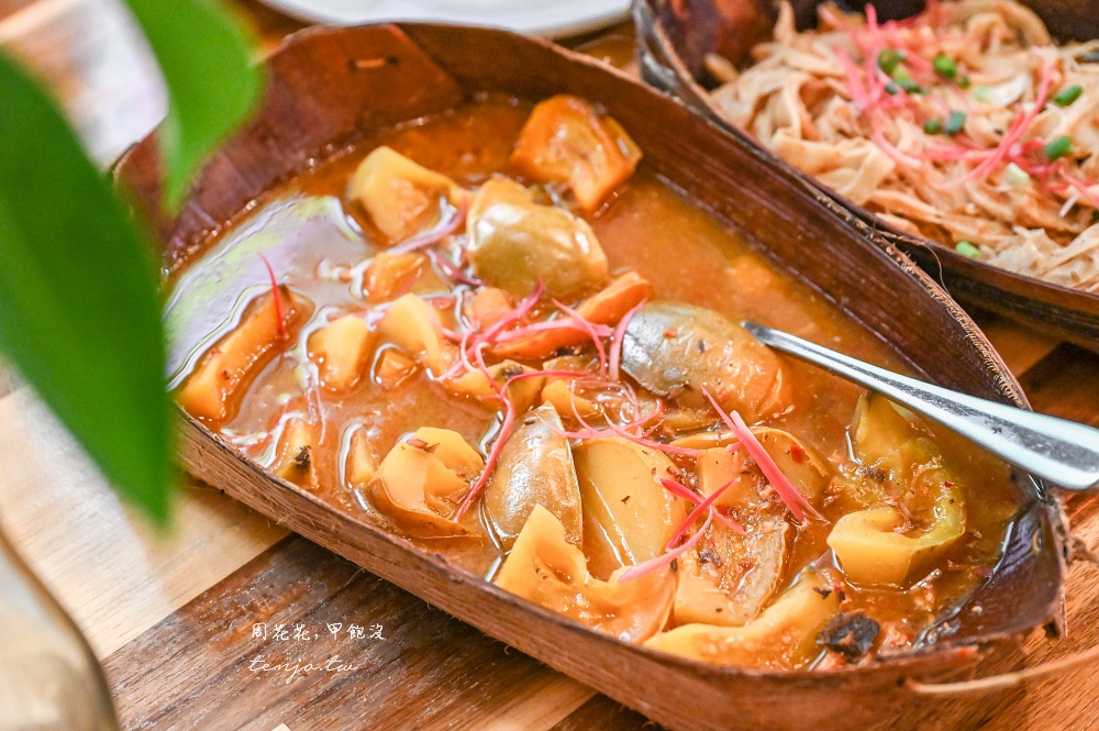 咖哩裡頭有竹筍、茄子,是道很下飯的料理