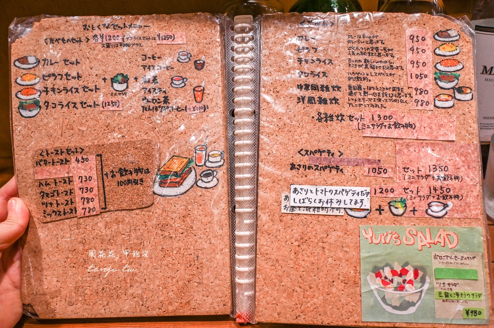 《JAZZ&COFFEE YURI》菜單如下,據說menu是用軟木塞製成的
