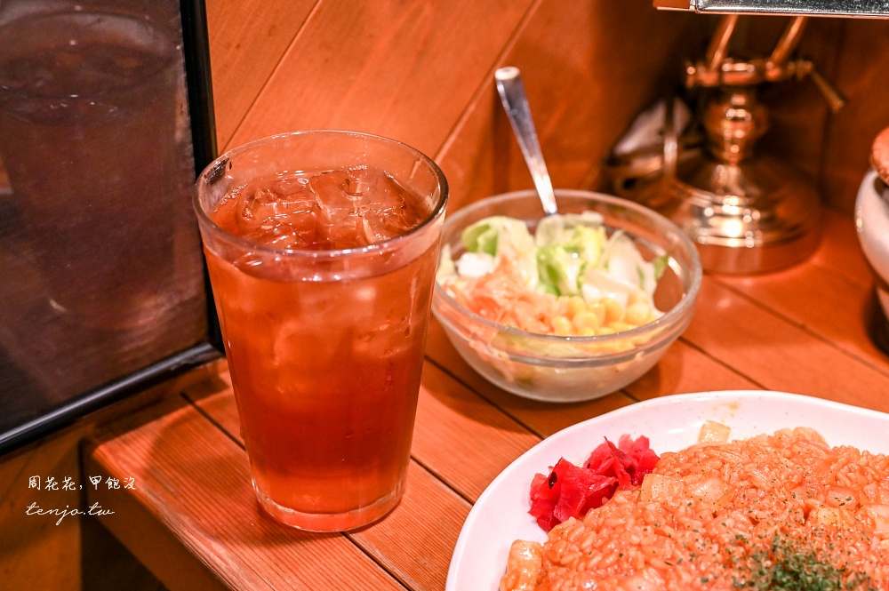 套餐會附上飲料、小份沙拉,飲料有咖啡、茶飲等多種選擇,我挑了伯爵冰茶