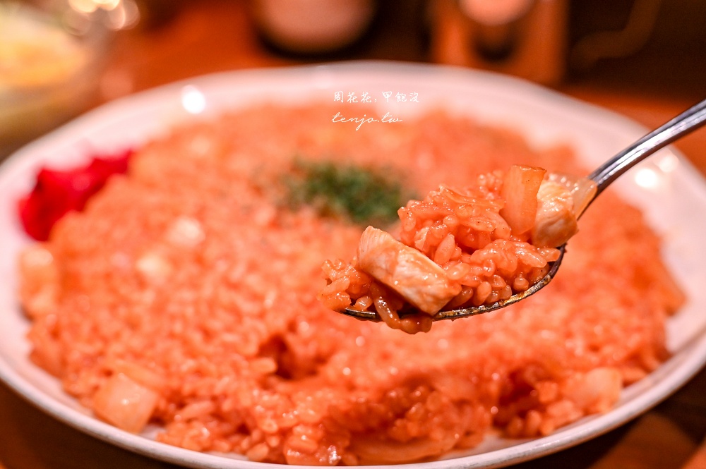 可以把他想成番茄奶油雞肉燉飯,因為加入大量奶油去煮,所以有著極度誘人香氣