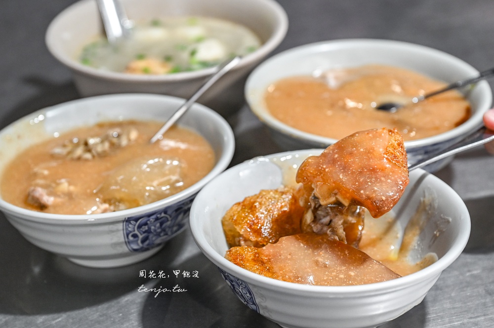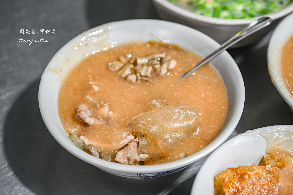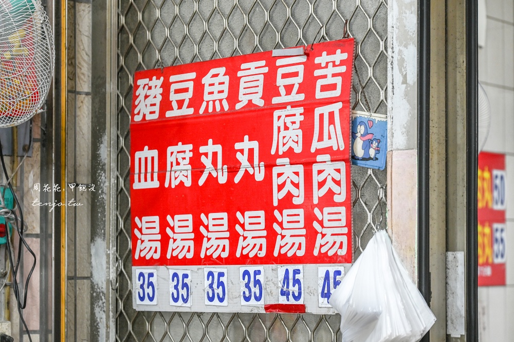 湯品類則有苦瓜肉湯、豆腐肉湯、貢丸湯、魚丸湯、豆腐湯、豬血湯,吃的喝的組合在一起,一張百元鈔票輕鬆搞定