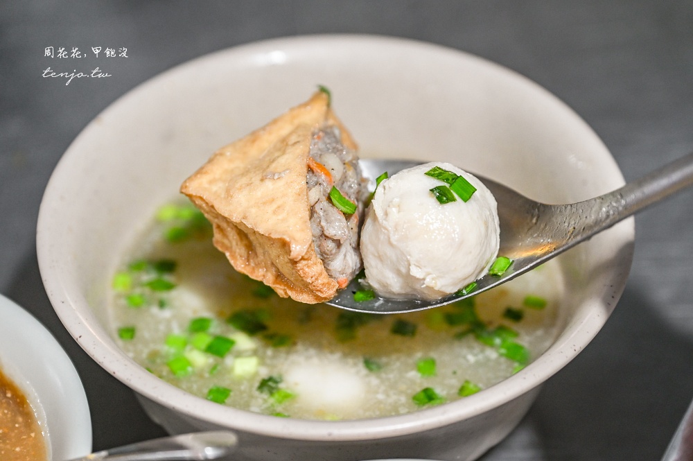 湯底是古早味的柴魚湯頭,豆腐肉則是《嘉家樂肉丸》特色,與肉圓的搭配飽足感十足