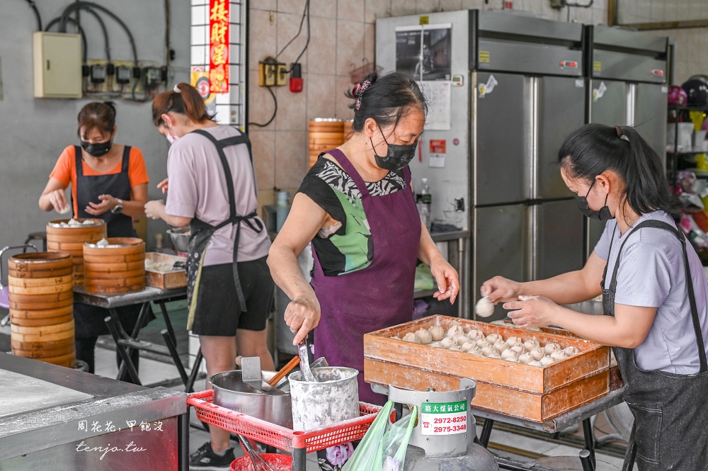 兩條生產線做水煎包、小籠包的人完全沒停過,看來是在為了中午人潮先做準備