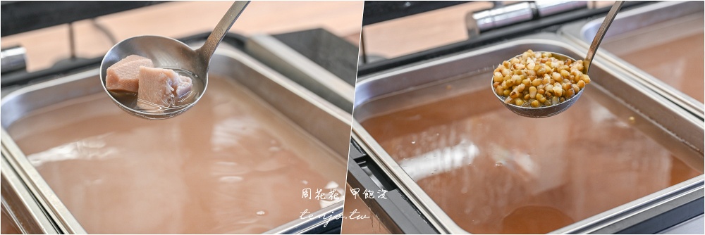 甜湯系列有冰糖銀耳、山粉圓、綠豆湯、芋頭湯,冷的熱的隨你挑選