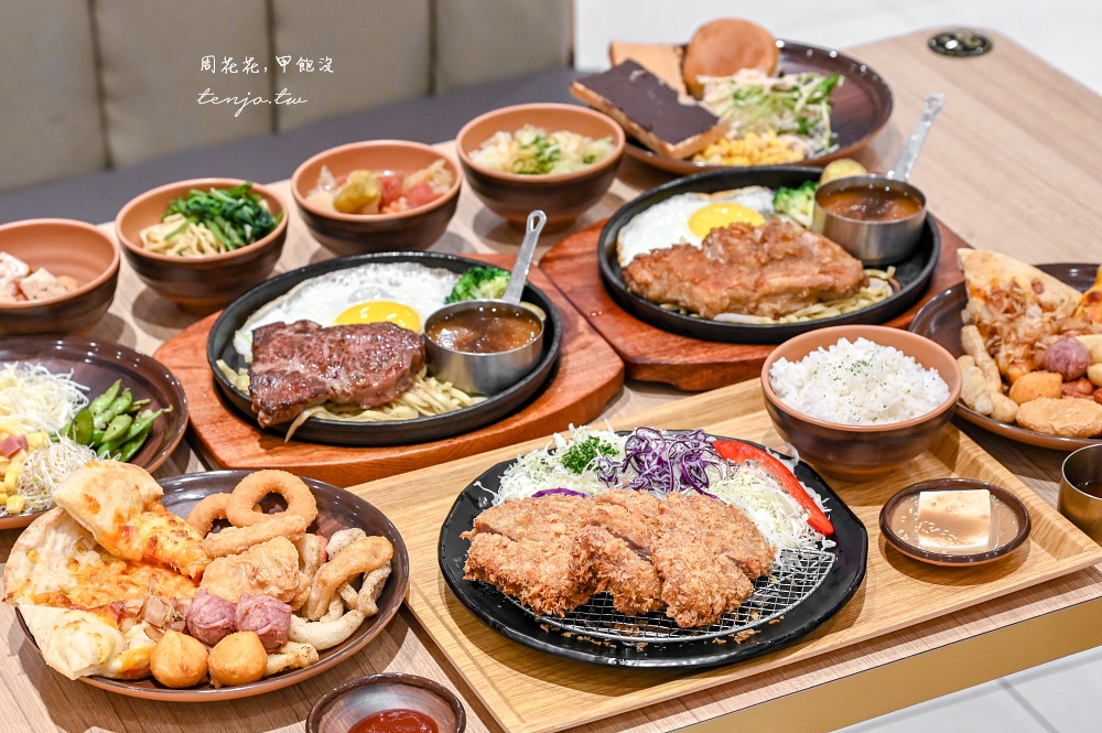 共分成鐵板洋食、炸物定食兩大類,價格就有包含自助吧吃到飽的費用;如果想吃的更豐盛的話,各式排餐、炸物都可做加購加點,我是覺得可以點自己想吃的主餐,然後狂吃自助吧是最划算的吃法