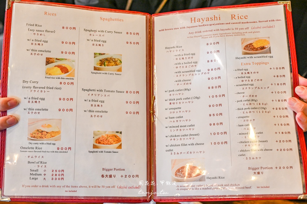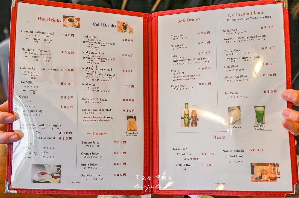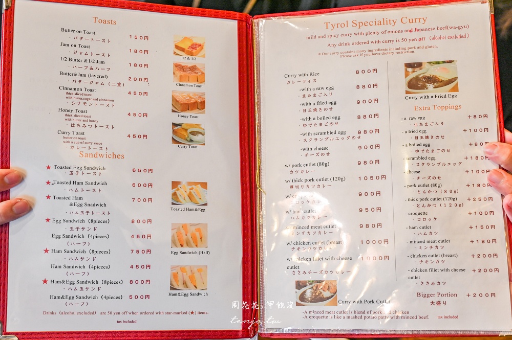 《喫茶チロル》菜單如下,有英文字和部分圖片,不用擔心不會點餐