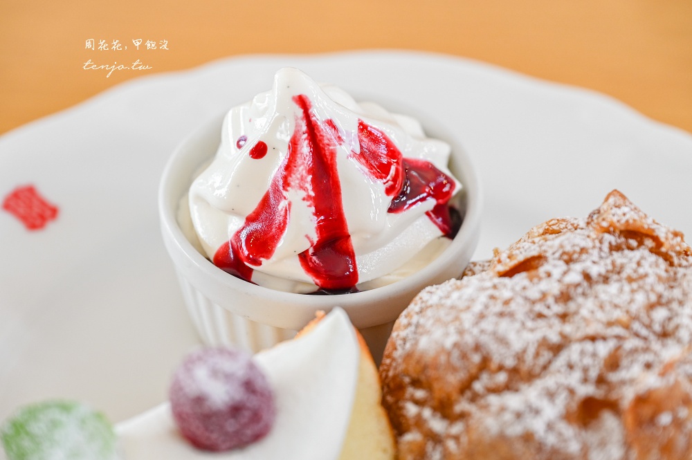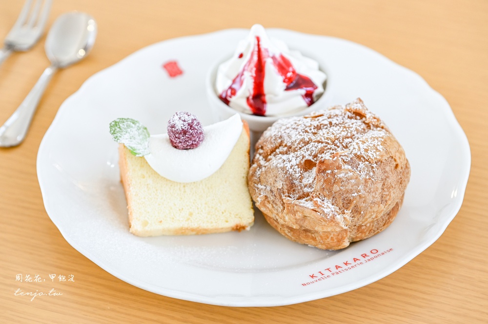 自選甜點部分,我在點餐時猶豫很久,因為店家說草莓蛋糕的人氣最高,但在一番掙扎以後,還是決定點「北菓樓」招牌夢不思議泡芙,我之前在小樽店吃過一次非常喜歡