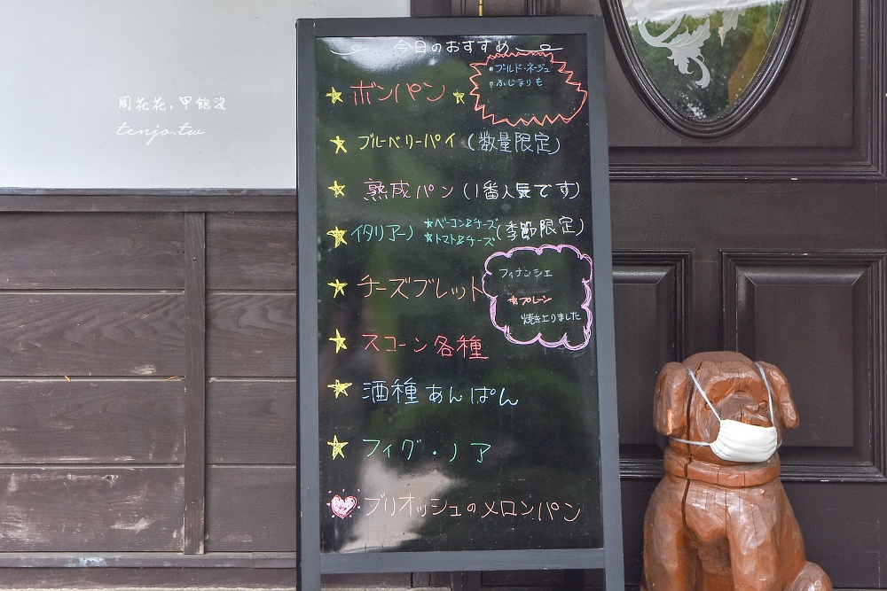 每天出爐的麵包品項可能都不太一樣,會把本日推薦寫在門口小黑板上,讓大家可以有所參考