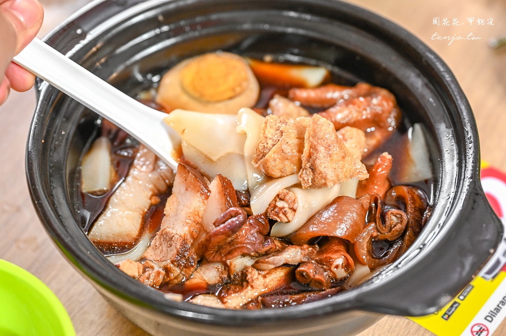 粿條有著討喜的Q彈口感,深褐色湯汁清甜不死鹹,裡頭還有豬腳、雞腳、大腸、豆皮、雞蛋等豐富配料