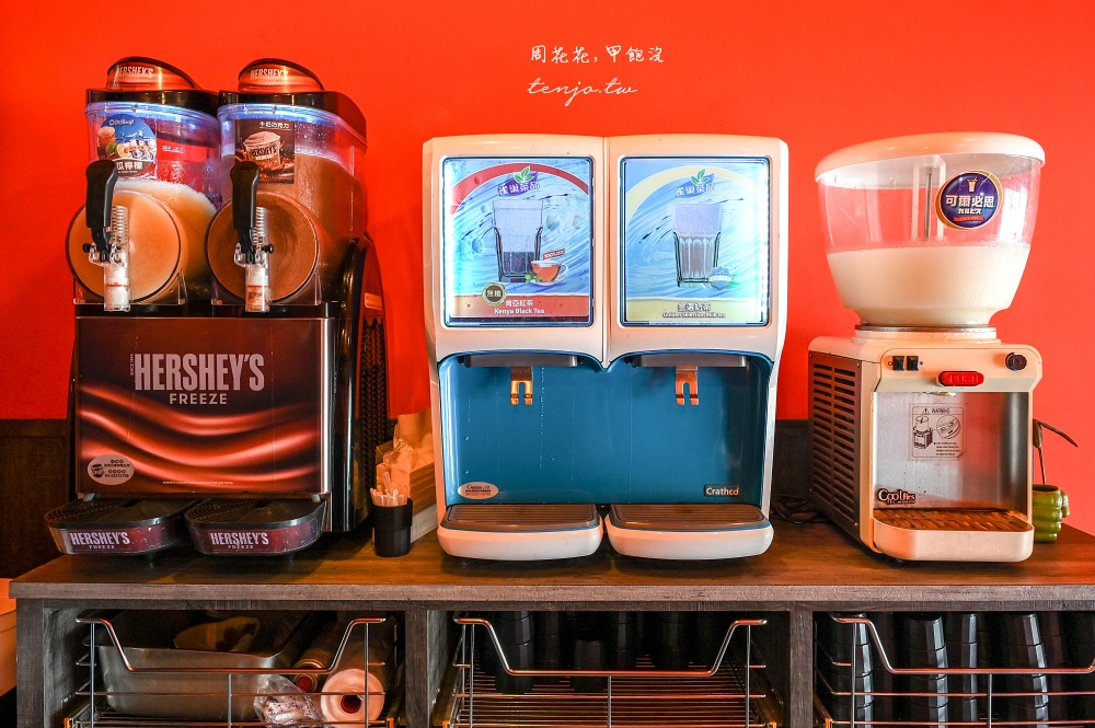 飲料區有HERSHEY’S巧克力冰沙、新加坡知名Asia Farm飲料機、雀巢咖啡機、雀巢飲料機、可爾必思、可口可樂汽水機