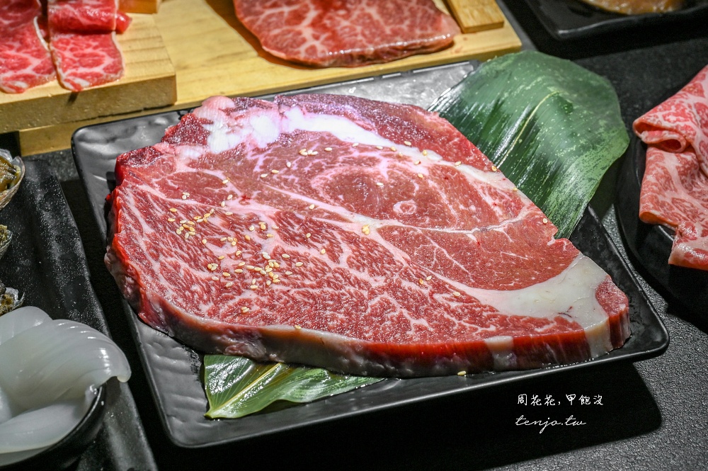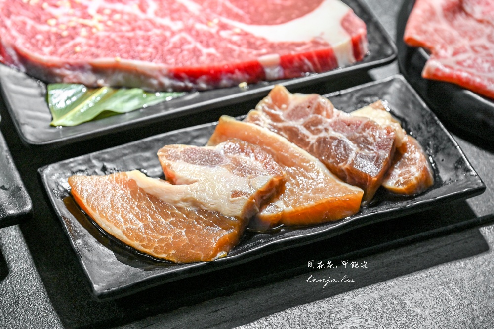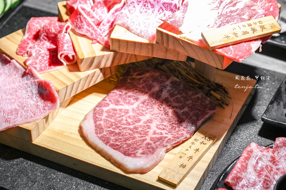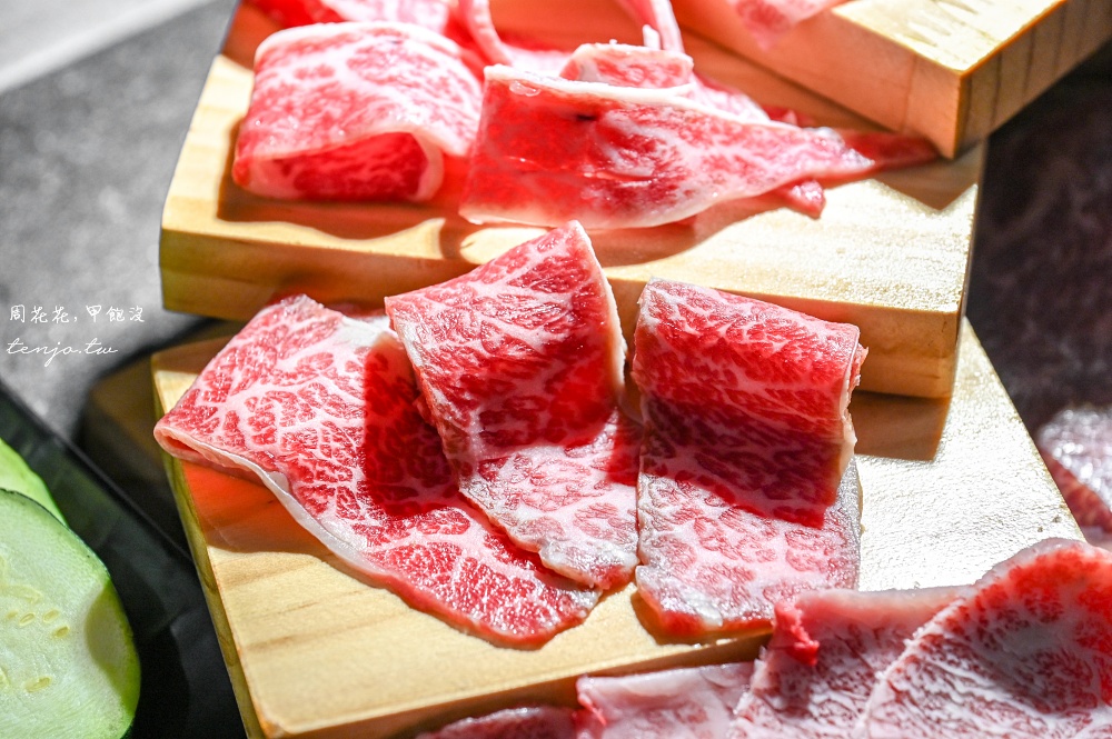 頂級嫩肩和牛、日本A5和牛霜降、日本A5和牛肋眼上蓋、A5和牛雪花、日本A5和牛牛排,每片的油花都有夠漂亮,這盤在燒肉店單點可不便宜,但在《樂樂燒肉蘆洲店》可以無限加點吃到飽