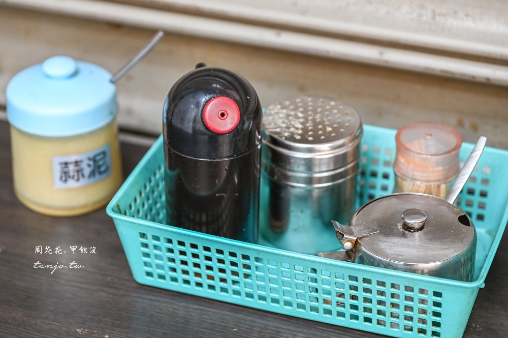 麵線都會加蒜泥、烏醋、香菜,桌上還有其他調味料,讓你可以再自行調味