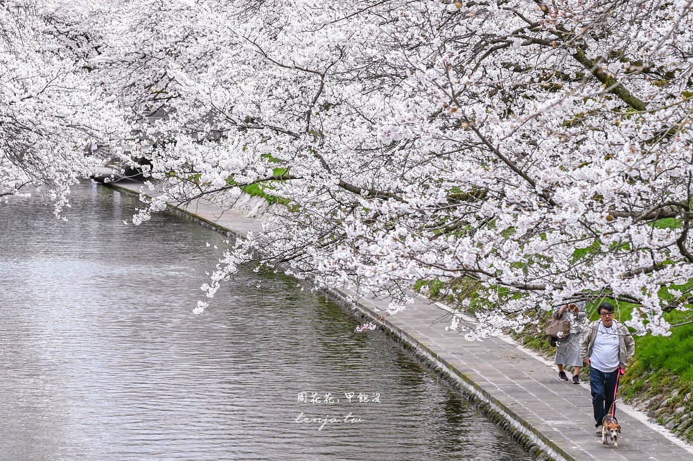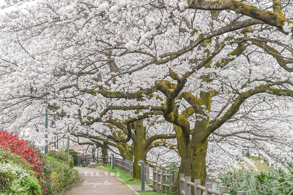 沿著河川兩岸種植滿滿染井吉野櫻,密集度高用手機就能輕鬆拍出好照片,是個值得推薦的富山櫻花景點!