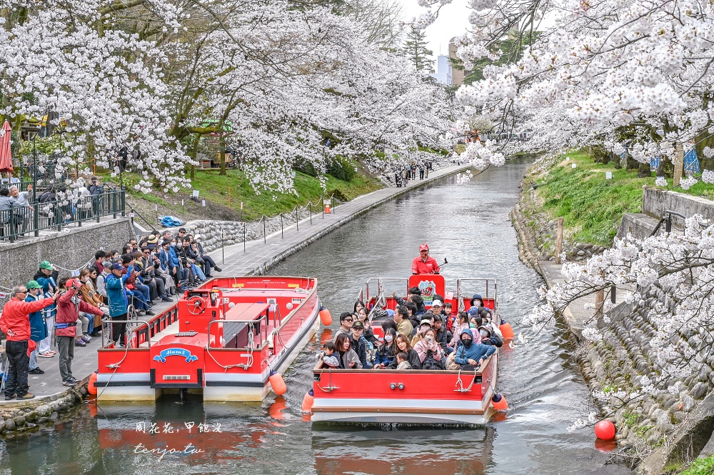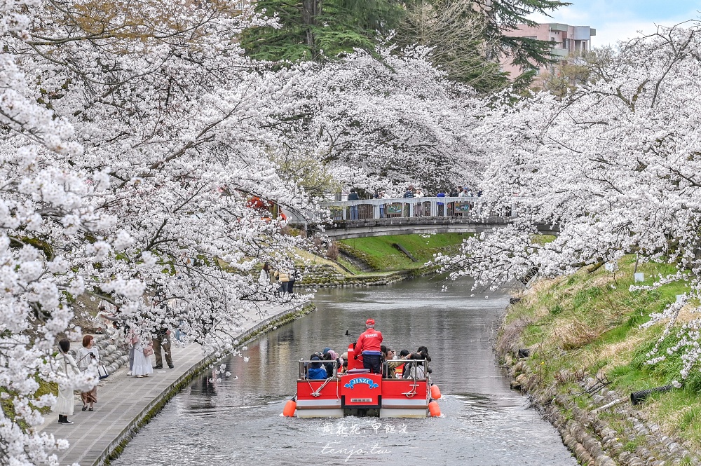 時間充裕更推薦搭乘松川遊覽船,走水路近距離欣賞櫻花美景,《松川公園》晚上會點燈還有夜櫻可賞!