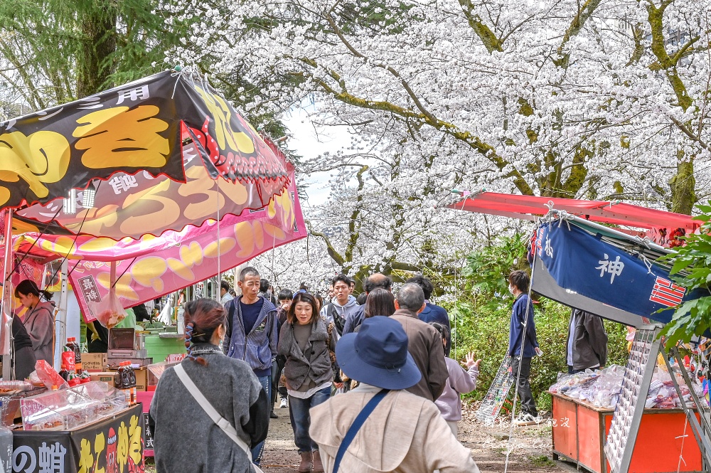 每年櫻花季的時候會有園遊會擺攤,週末人潮不少非常熱鬧;但和其他日本賞櫻名所相比,沒有太多觀光客,依舊能維持悠閒的賞櫻氣氛